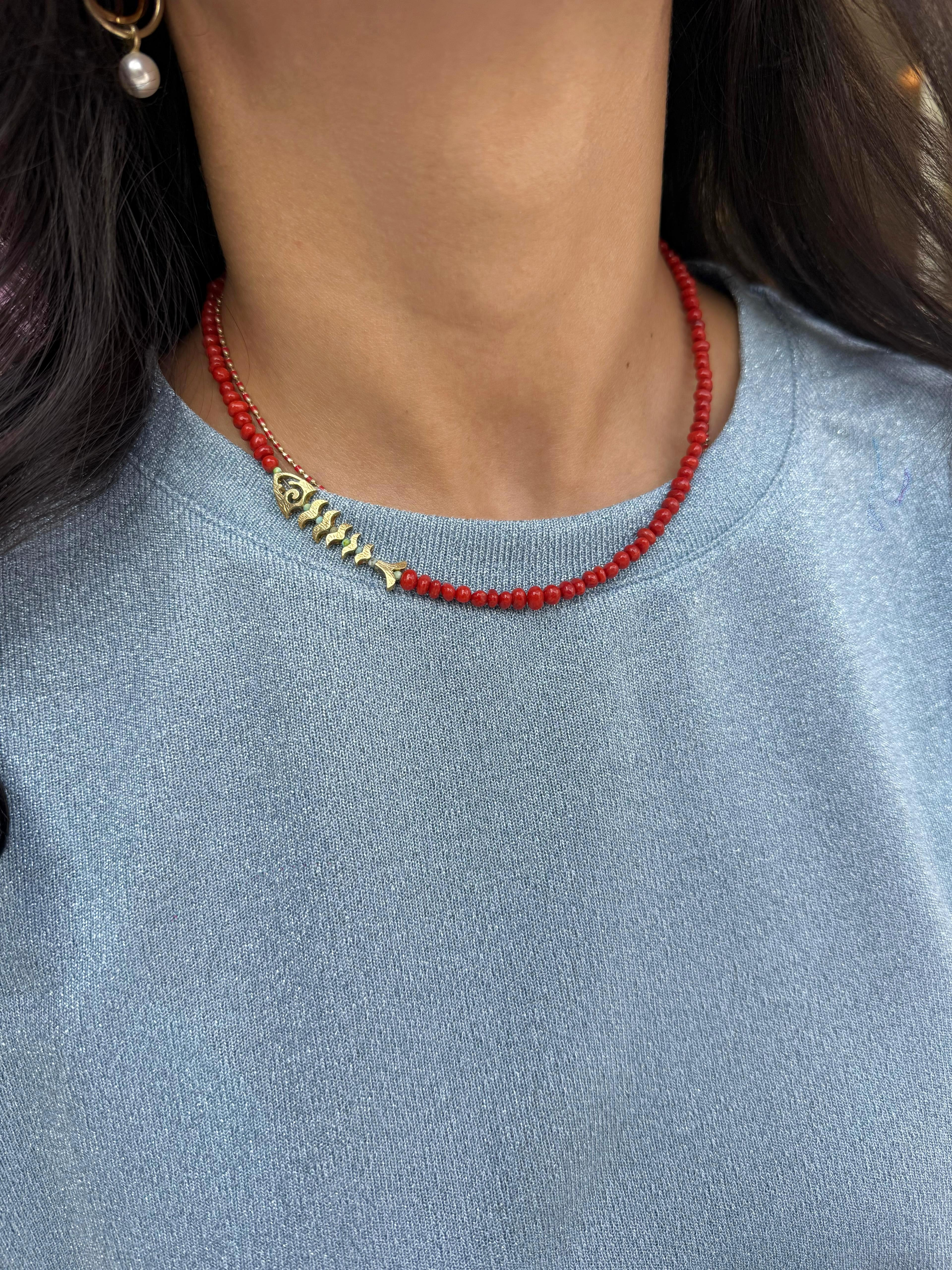 Doğal Taş ( Mercan ) Balık Kolye (d11104)