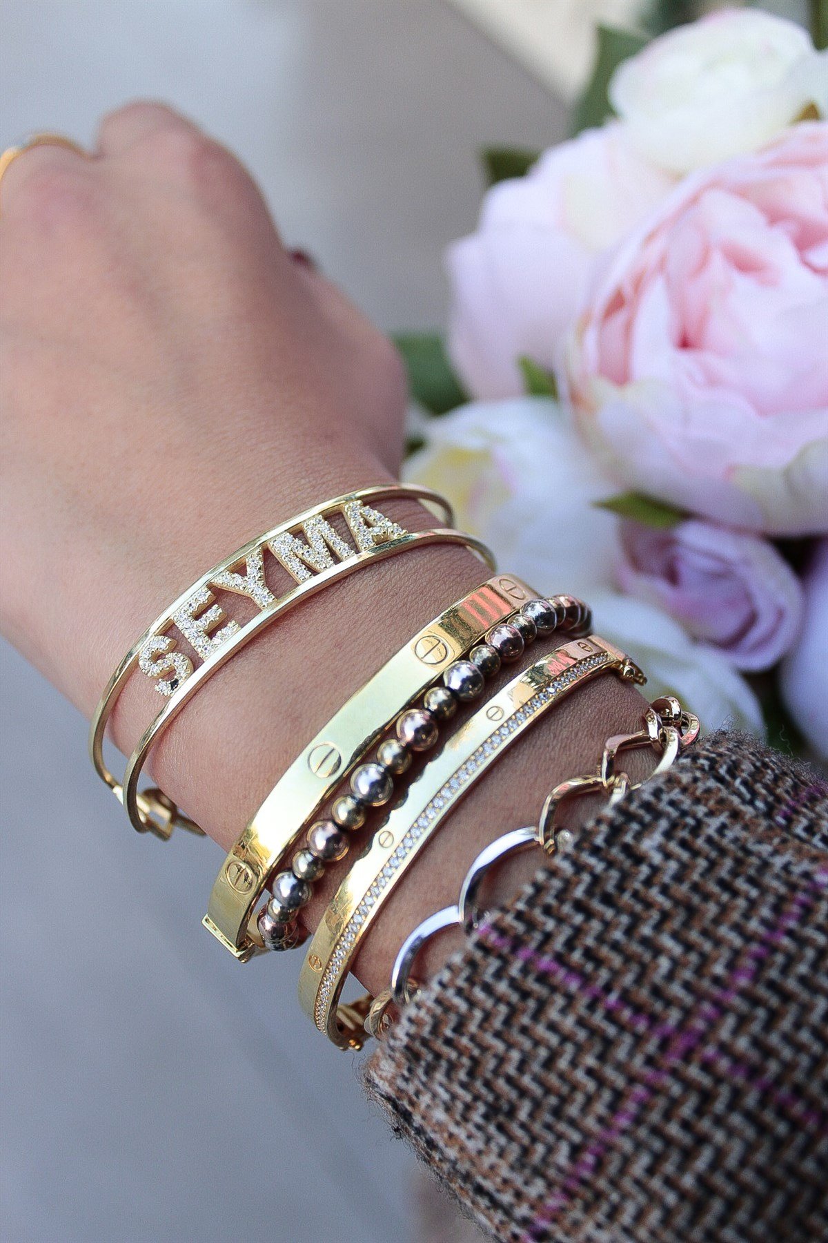 Taşlı İsim Bileklik ( İki İsim )